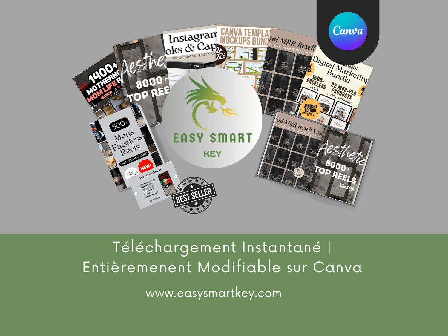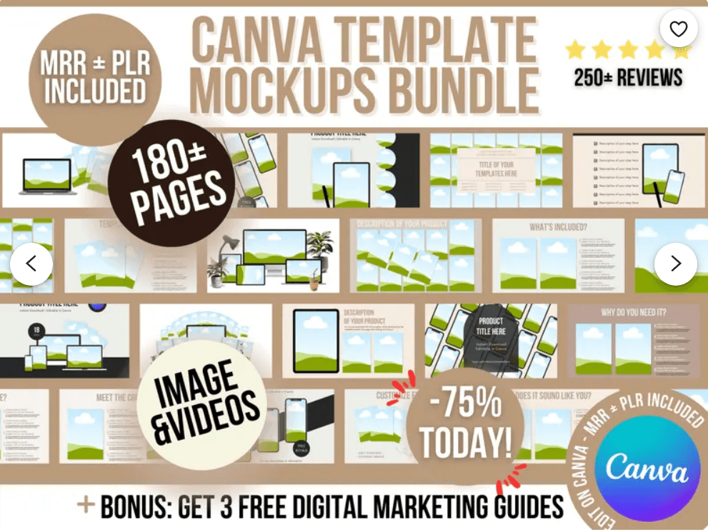 Lot de modèles MRR Mockup Canva, plus de 100 scènes de vente de produits numériques maquette avec droits de revente principaux, modèles DFY Digital Products Canva,