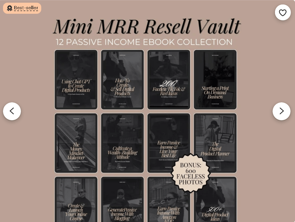 Passive Income eBook Bundle MRR // maîtrise des droits de revente, revente de produits numériques, vente sur Etsy, ebook PLR, ebook DFY, droits de marque privée