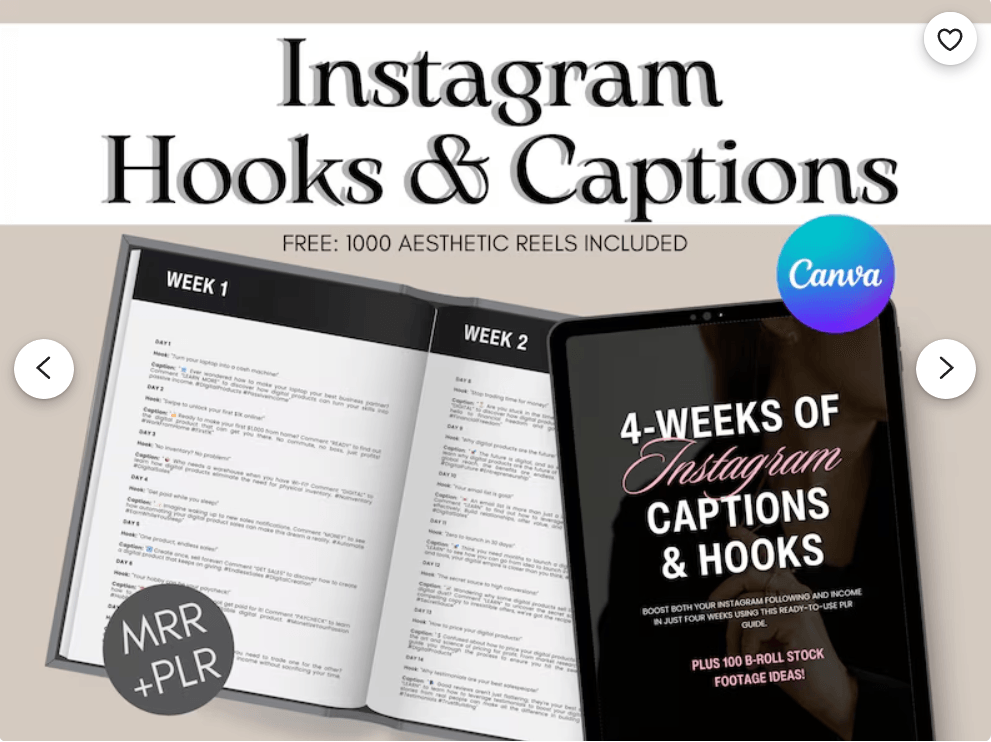 Done For You Hooks pour réseaux sociaux, Hooks et légendes pour bobines Instagram, DPP, MRR, légendes Instagram, Hooks Instagram DFY,