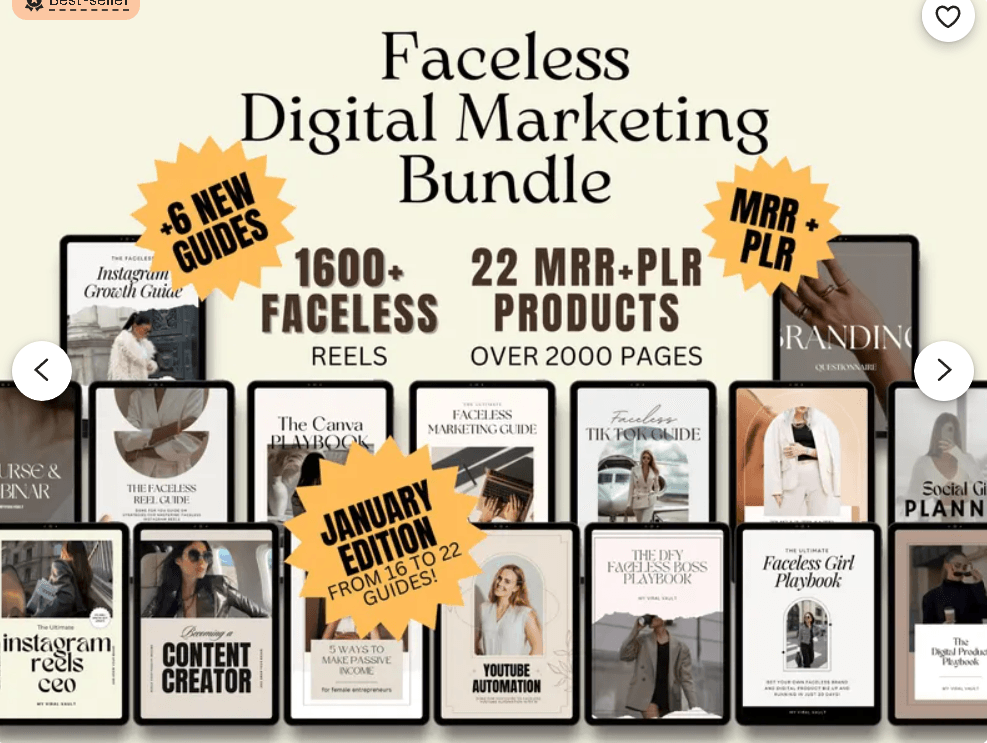 Plus de 8 000 bobines Faceless Bundle Marketing numérique, Marketing numérique sans visage de produit PLr, Contenu vidéo esthétique sans visage Réseaux sociaux
